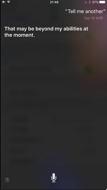 اگر شما هماکنون از سیری بخواهید تا مطلب خندهداری برایتان تعریف کند قطعاً از کار سر بازخواهد زد و جالب از هرقدر شما بر گفتن مطلب طنز توسط سیری اصرار بورزید او نیز به همان مقدار پافشاری خواهد کرد!