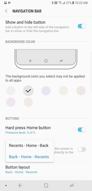 نکته مثبتی که در گوشی‌های جدید پرچمدار سامسونگ، علی‌الخصوص گلکسی نوت 8 (Galaxy Note 8) به چشم می‌خورد، قابلیت شخصی‌سازی دکمه‌های ناوبری است که برای کاربرانی که پیش از این از تلفن‌های هوشمندی استفاده کرده‌اند که کلید برگشت آن‌ها در سمت دیگری بوده است، این قابلیت بسیار مناسب خواهد بود.
