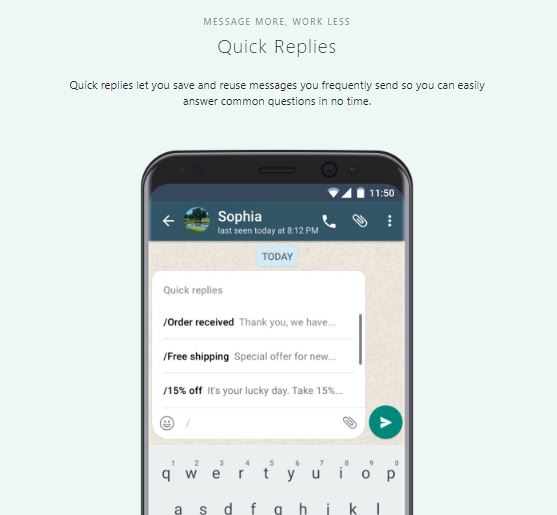 این ظاهر واتس اپ بیزنس است! به صورت کلی نام کسب و کار شما، یک تصویر پروفایل، زمان باز بودن، وب سایت، دسته بندی، توضیحات، آدرس و شماره تلفن عمومی قابل تنظیم است اما این تمام قابلیت های واتس اپ بیزنس نیست. شما می توانید این برنامه را به شکلی تنظیم کنید که برای سوالات یا پیام های متداول، جواب های از پیش آماده داشته باشید تا سریع تر به آن ها پاسخ دهید. حتی زمانی که مشغول هستید و نمی توانید پاسخ پیام ها را بدهید برخی پیام ها با جواب مشخص (مثلا در پاسخ اولین پیام که عموما سلام است) پاسخی را به صورت خودکار ارسال کند.