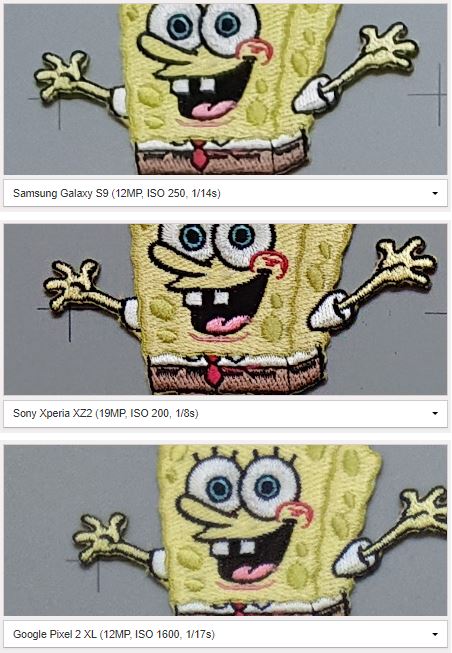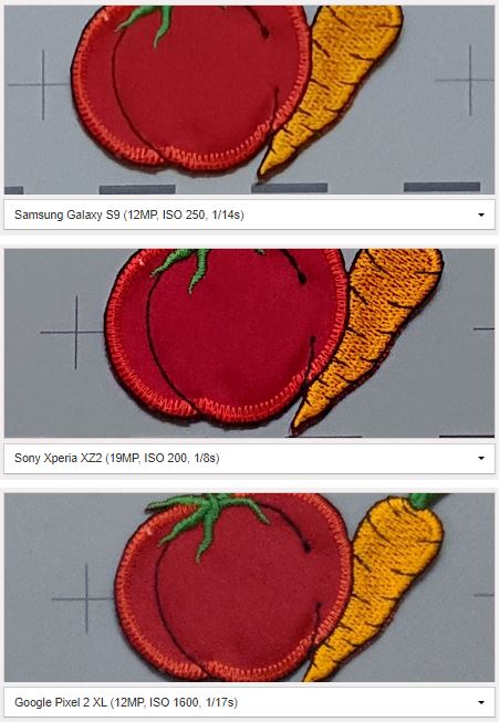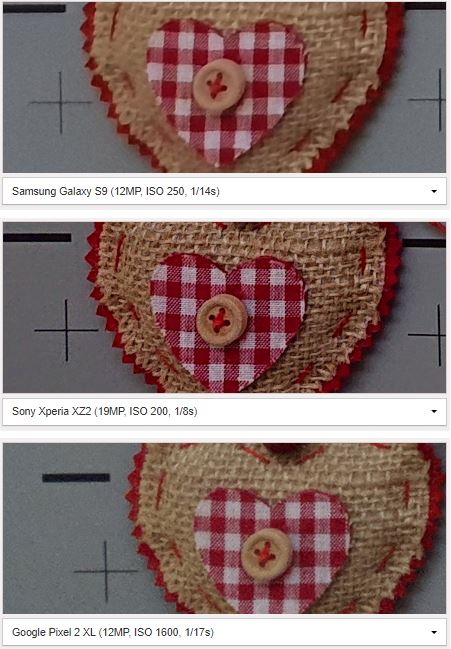در شرایط نوری خوب گلکسی اس 9 عملکرد بسیار تحسین برانگیزی دارد و برخی موارد حتی بافت را بهتر از اکسپریا ایکس زد 2 ثبت کرده است اما حقیقت اینجاست که عملکرد اکسپریا ایکس زد 2 آنقدرها پشت سر گلکسی اس 9 نیست! عجیب اینکه پیکسل 2 ایکس ال در این شرایط آزمایشگاهی خیلی خوب ظاهر نشده است اما همه می دانیم که در شرایط نوری واقعی و شرایط روزمره تصاویر بی نظیری ثبت می کند!