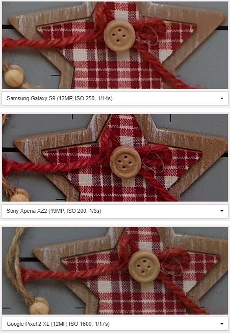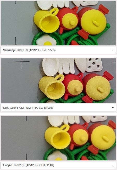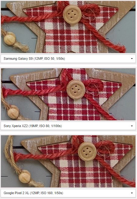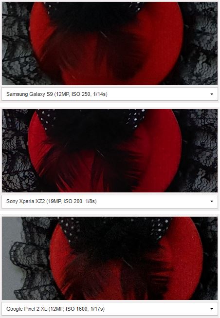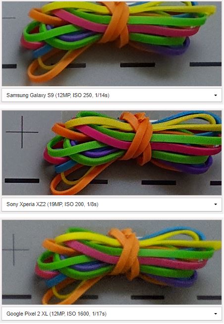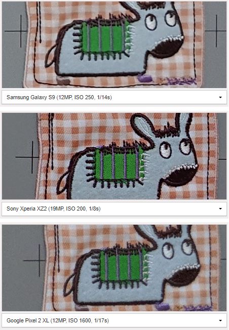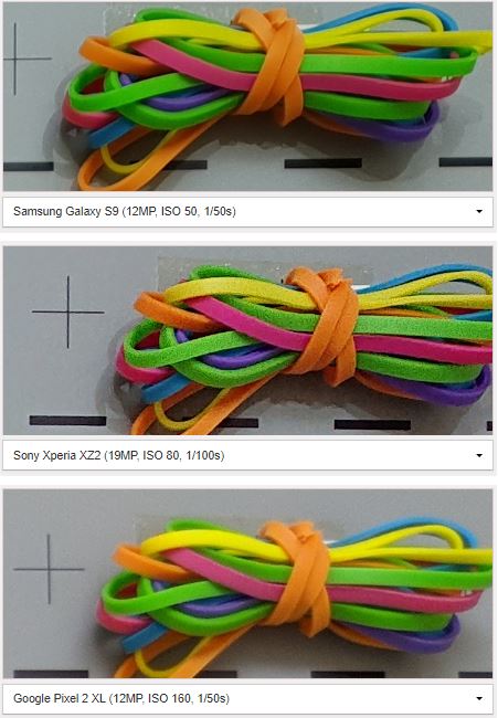 در شرایط نوری خوب گلکسی اس 9 عملکرد بسیار تحسین برانگیزی دارد و برخی موارد حتی بافت را بهتر از اکسپریا ایکس زد 2 ثبت کرده است اما حقیقت اینجاست که عملکرد اکسپریا ایکس زد 2 آنقدرها پشت سر گلکسی اس 9 نیست! عجیب اینکه پیکسل 2 ایکس ال در این شرایط آزمایشگاهی خیلی خوب ظاهر نشده است اما همه می دانیم که در شرایط نوری واقعی و شرایط روزمره تصاویر بی نظیری ثبت می کند!