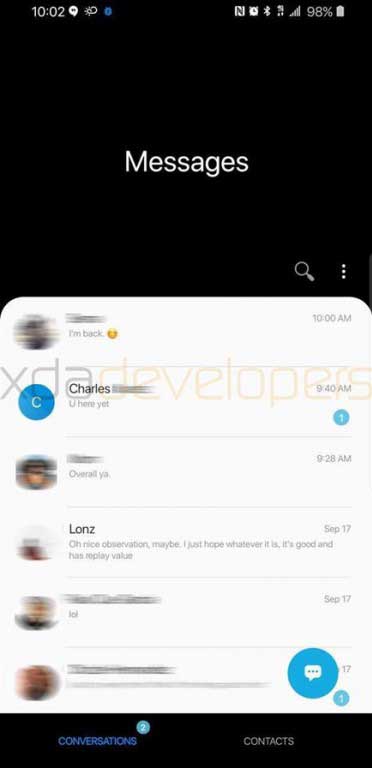 نرم افزارهای پیش فرض سامسونگ نیز به روز شده اند و رابط کاربری جدید خواهند داشت اما مثلا در برنامه پیام ها که شاهد آن هستید، کمی بعید است که نصف صفحه فقط به عنوان “برنامه پیام” اختصاص پیدا کند. برنامه دوربین نیز تغییرات قابل لمسی داشته و در نهایت نوتفیکیشن ها در منوی نوتیفیکیشن ها با لبه های گرد مخصوص سامسونگ طور دیده می شود: