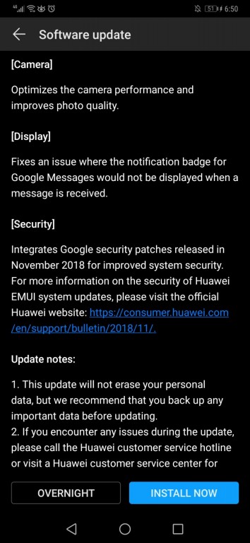 هوآوی یک آپدیت ۵۲۳ مگابایتی برای هوآوی میت ۲۰ پرو ارایه کرده است که به موجب آن بهبودهای قابل توجهی در جدیدترین پرچمدار این شرکت چینی دیده خواهد شد. این آپدیت رابط کاربری EMUI 9.0.0.142 را به همراه دارد که وصله امنیتی ماه نوامبر را هم ارایه خواهد کرد. در حال حاضر آپدیت مذکور در کشور ما، ایران عرضه نشده است اما جای نگرانی نیست و تا روزهای آتی باید برای بازارهای دیگر از جمله بازار ما هم ارایه شود.
