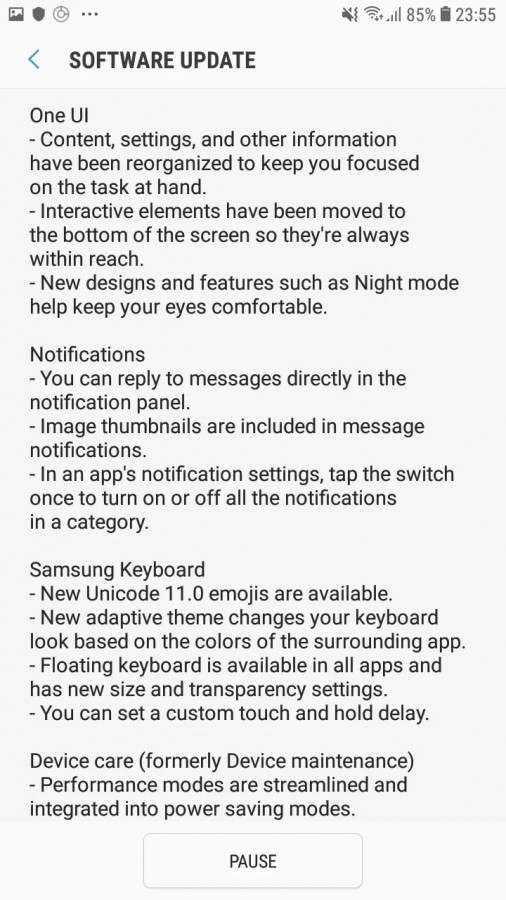 این آپدیت هم‌اکنون فقط در دسترس کاربران هندی گلکسی J7 Duo سامسونگ قرار گرفته و انتظار می‌رود که در هفته‌های آتی به سایر کشورها نیز راه پیدا کند. تغییرات ایجاد‌شده در این آپدیت را می‌توانید در تصویر زیر مشاهده کنید.
