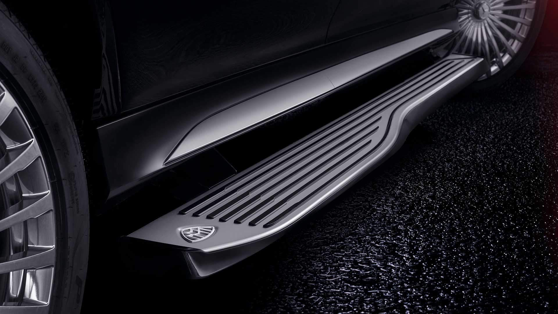 رینگ های بزرگ ۲۲ یا ۲۳ اینچ به انتخاب و سلیقه خریدار برای این خودرو قابل سفارش خواهد بود. از جمله ادوات کرومی می توان به ریل باربند، قاب پنجره ها، ستون میانی و رکاب اشاره نمود. نکته جالب در GLS 600 میباخ، امکان سفارش رنگ بدنه خودرو با ۸ ترکیب رنگ دوگانه می باشد که سیاه متالیک با بدنه قرمز یا نقره ای را شامل می شود.