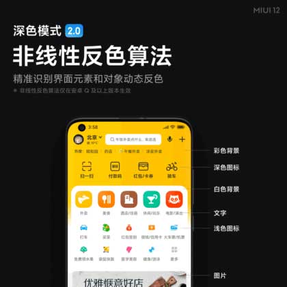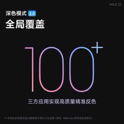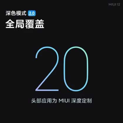 “حالت تاریک” فعلی در MIUI 11 روی همه برنامه های سیستم تأثیر نمی گذارد و می توان گفت برای برنامه های شخص ثالث یکسان است. اما با “Dark Mode 2.0” در MIUI 12 ، این شرکت تأیید می کند که از ۴۲ برنامه سیستم و ۲۰ برنامه اصلی با ادغام عمیق حالت تاریک پشتیبانی کند. این ویژگی جدید گزارشی را از ماه نوامبر تأیید می کند که یک مهندس MIUI 12 گفته بود حالت تاریک سراسری به این رابط کاربری خواهد آمد.