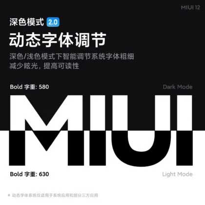 علاوه بر این “حالت تاریک 2.0” در MIUI 12 با تغییر پویا ضخامت فونت و همچنین کاهش تابش نور و شفافیت، روی فونت ها تأثیر می گذارد. پس از خاموش شدن حالت تاریک، آنها به حالت عادی باز می گردند تا حالت نور را تنظیم کنند. این ویژگی مطابق با گزارش قبلی فونت های یکپارچه و عناصر UI است که توسط یک طراح رده بالا MIUI در یک جلسه AMA ( مخفف: از من سؤال کنید هر چیزی) تأیید شده است. بد نیست به این اشاره کنم که این ویژگی در One UI 2.1 روی گلکسی اس ۲۰ اولترا به صورت دستی در دسترس بود و ما آن را در بررسی خود نیز عنوان کردیم.