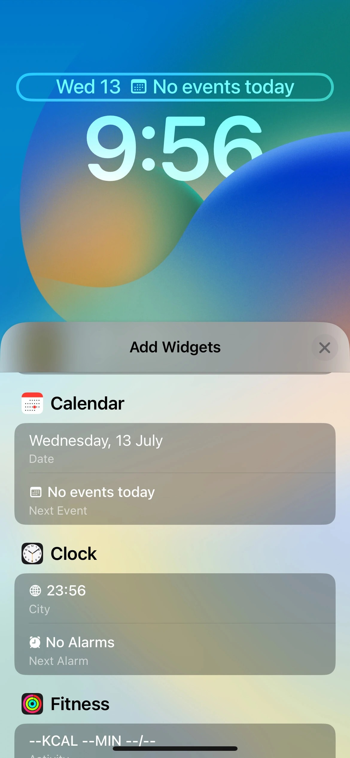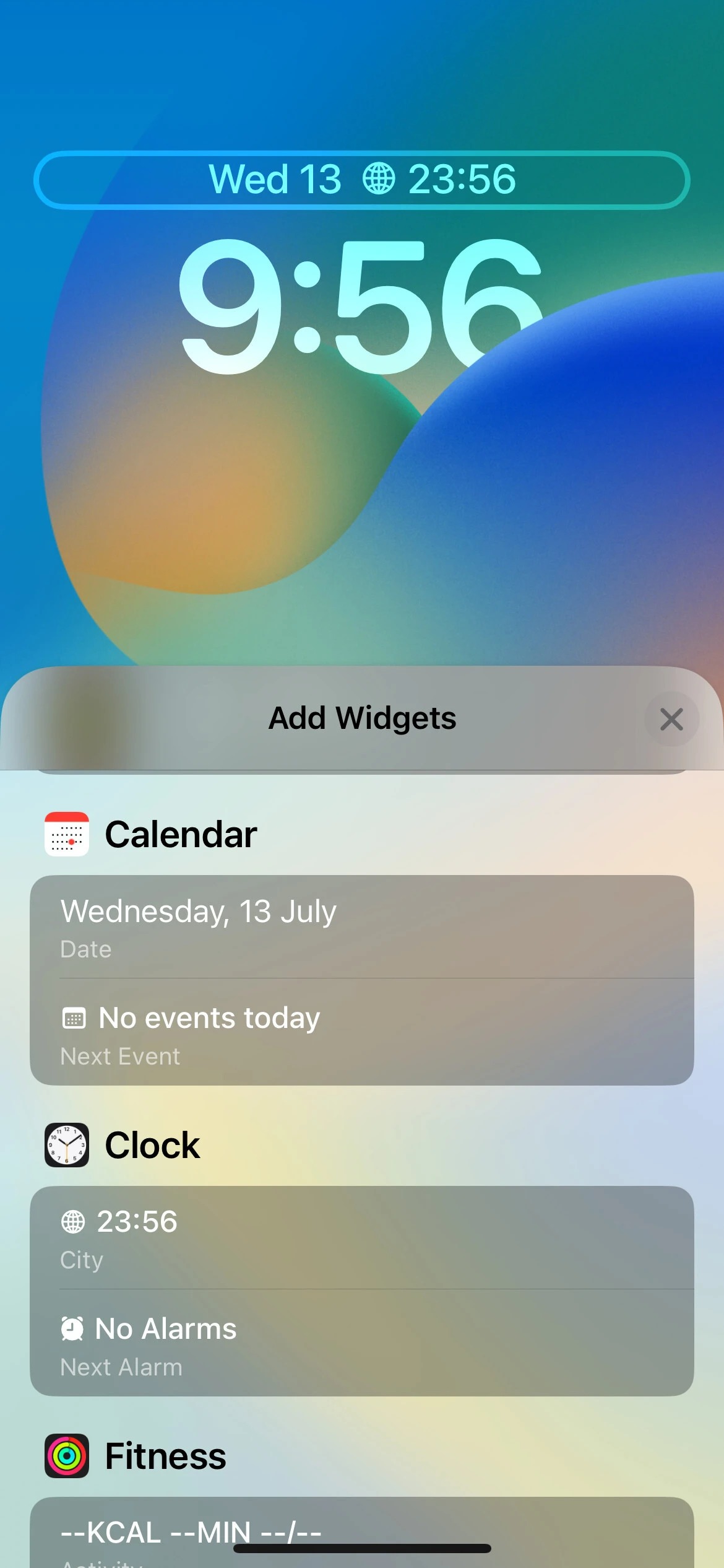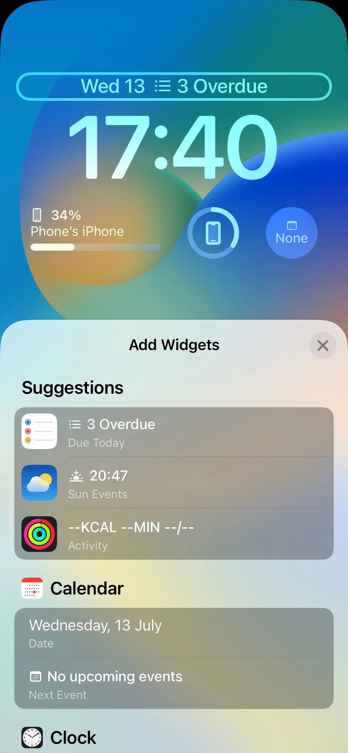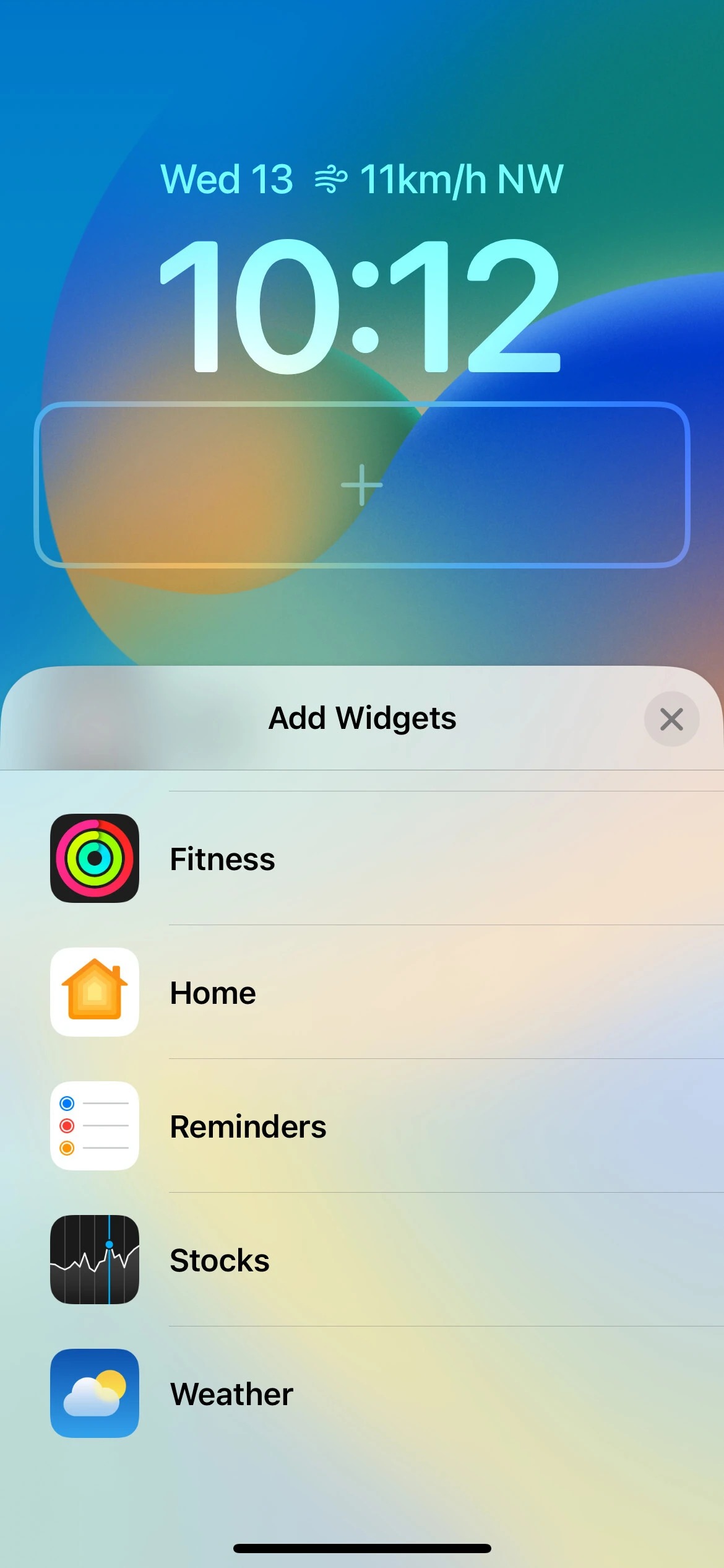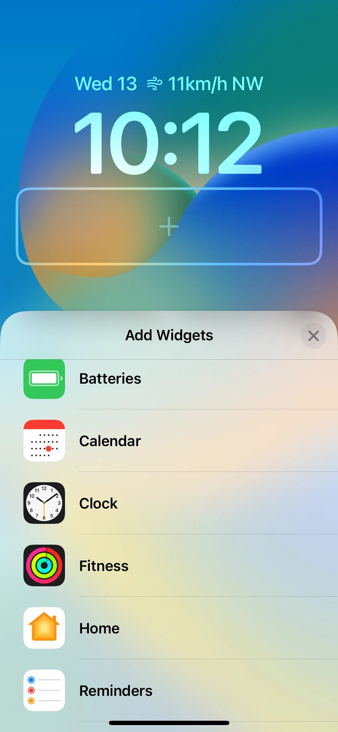 در حال حاضر ، iOS 16 از ۱۵ ابزارک برای ردیف اول در شش برنامه پشتیبانی می‌کند که شامل تقویم، ساعت، تناسب اندام، یادآور، وضعیت بورس و آب و هوا می‌باشد. از آنجا که آن‌ها توسط برنامه‌ها قرار گرفته‌اند، می‌توانید ویجت مورد نظر خود را به راحتی پیدا کنید. شما همچنین یک بخش Suggestions یا پیشنهادی را برای دریافت برخی از ابزارک‌های توصیه شده و استفاده از آن‌ها دارید. با این حال، از آنجا که فضای موجود در ردیف اول کاملا محدود است، شما فقط می‌توانید یک ویجت را در یک زمان به خصوص داشته باشید که همیشه در سمت راست تاریخ قرار دارد.