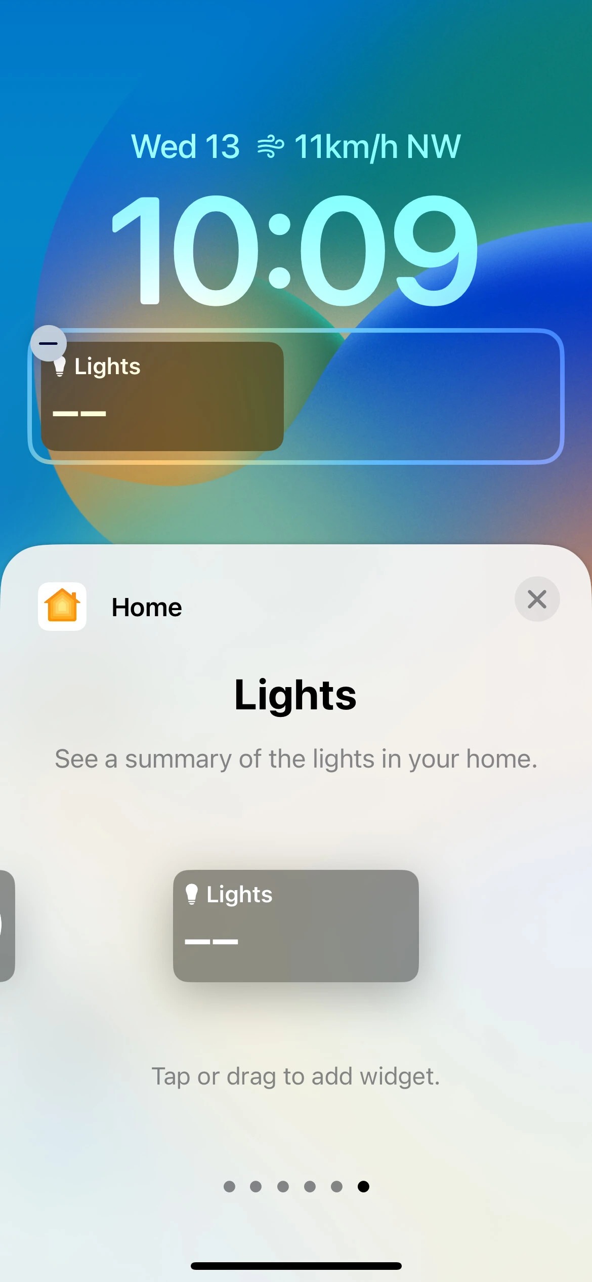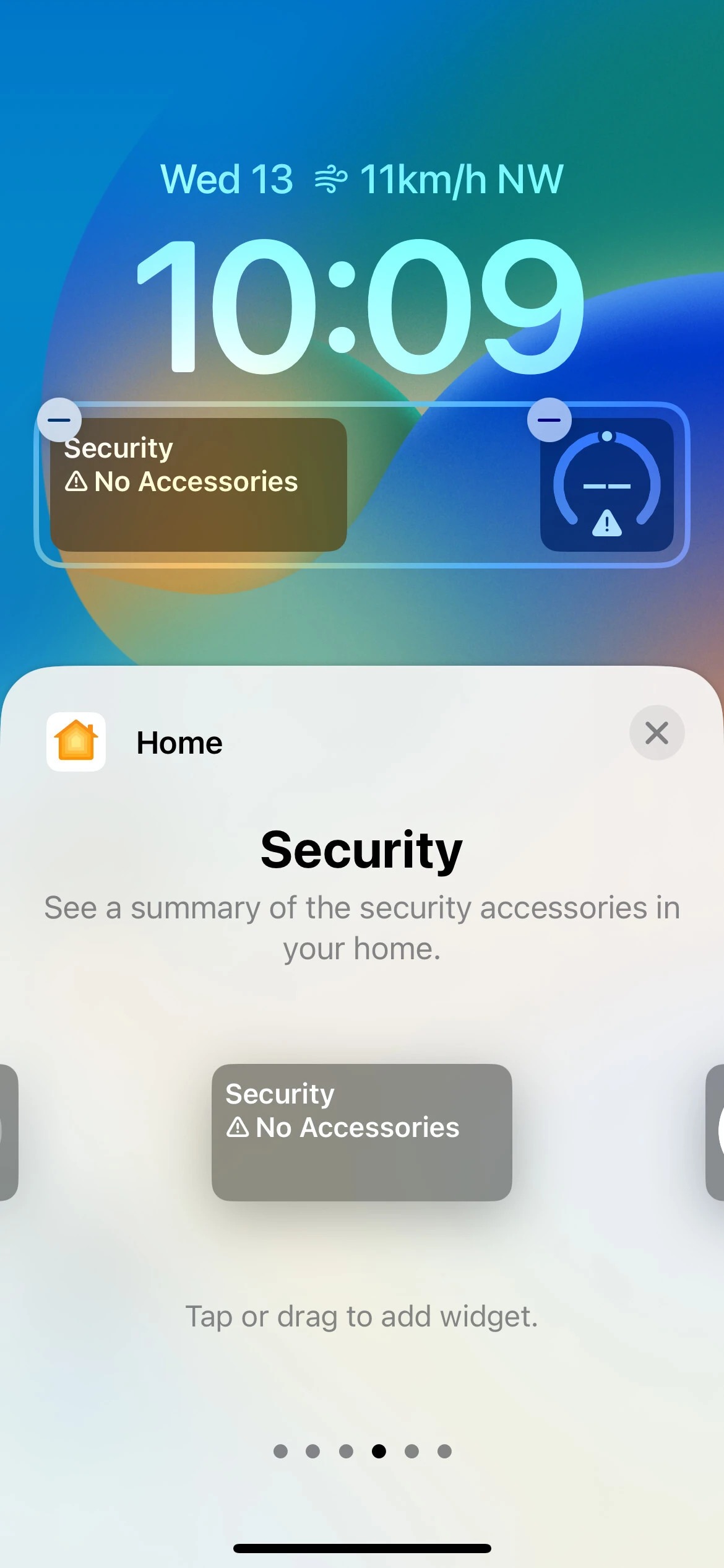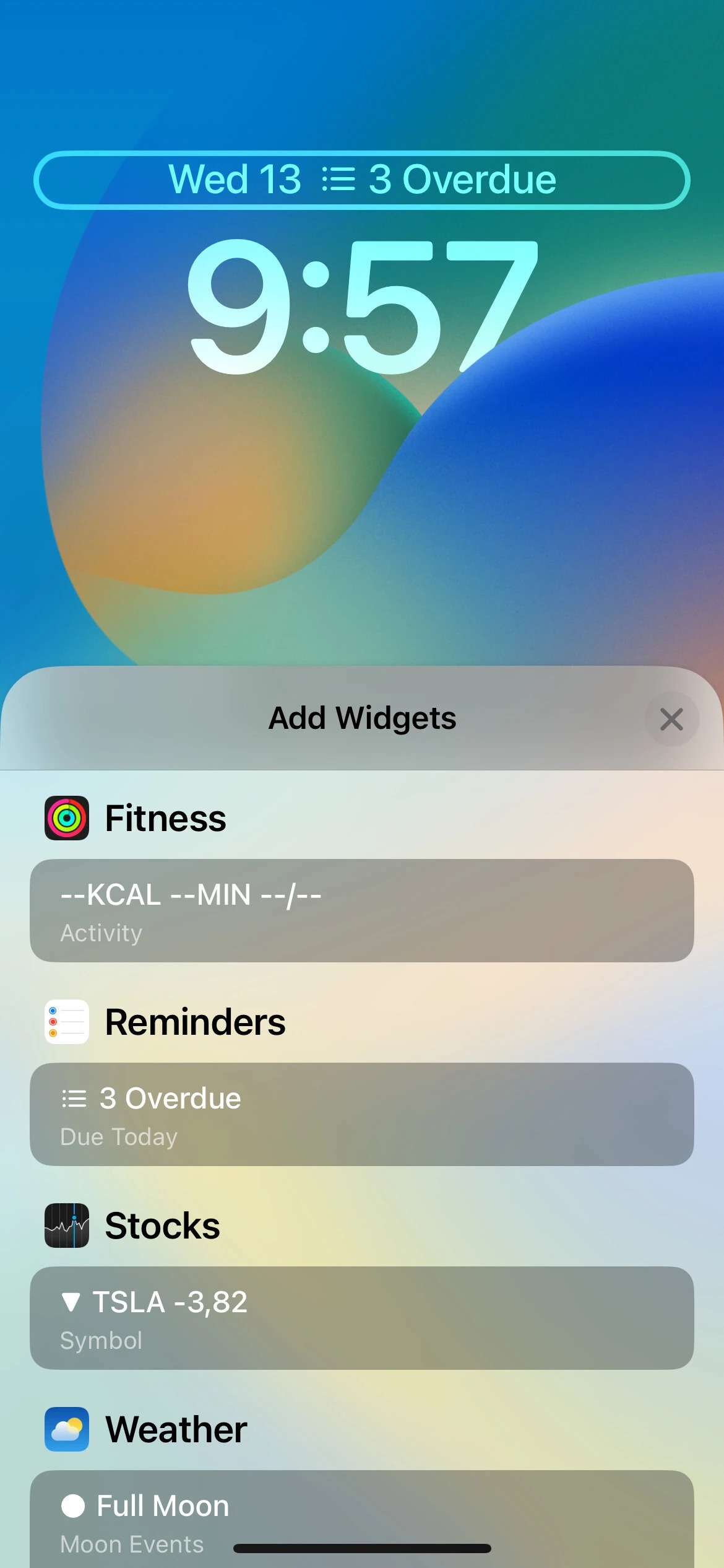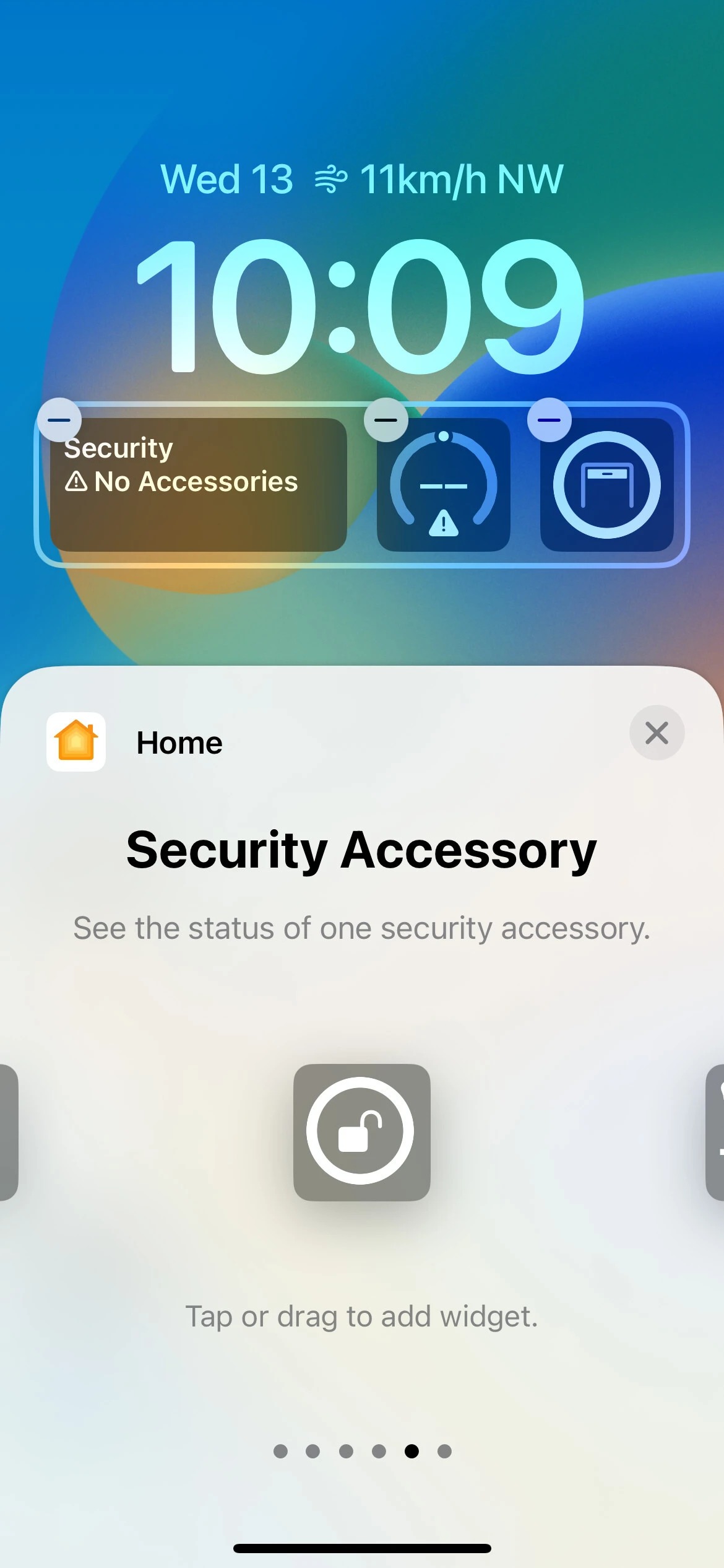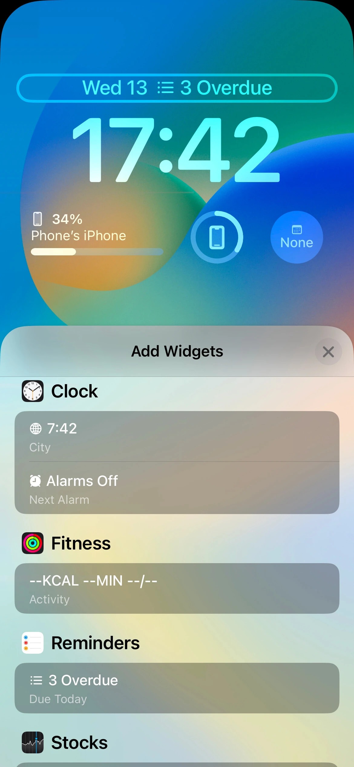 در حال حاضر ، iOS 16 از ۱۵ ابزارک برای ردیف اول در شش برنامه پشتیبانی می‌کند که شامل تقویم، ساعت، تناسب اندام، یادآور، وضعیت بورس و آب و هوا می‌باشد. از آنجا که آن‌ها توسط برنامه‌ها قرار گرفته‌اند، می‌توانید ویجت مورد نظر خود را به راحتی پیدا کنید. شما همچنین یک بخش Suggestions یا پیشنهادی را برای دریافت برخی از ابزارک‌های توصیه شده و استفاده از آن‌ها دارید. با این حال، از آنجا که فضای موجود در ردیف اول کاملا محدود است، شما فقط می‌توانید یک ویجت را در یک زمان به خصوص داشته باشید که همیشه در سمت راست تاریخ قرار دارد.