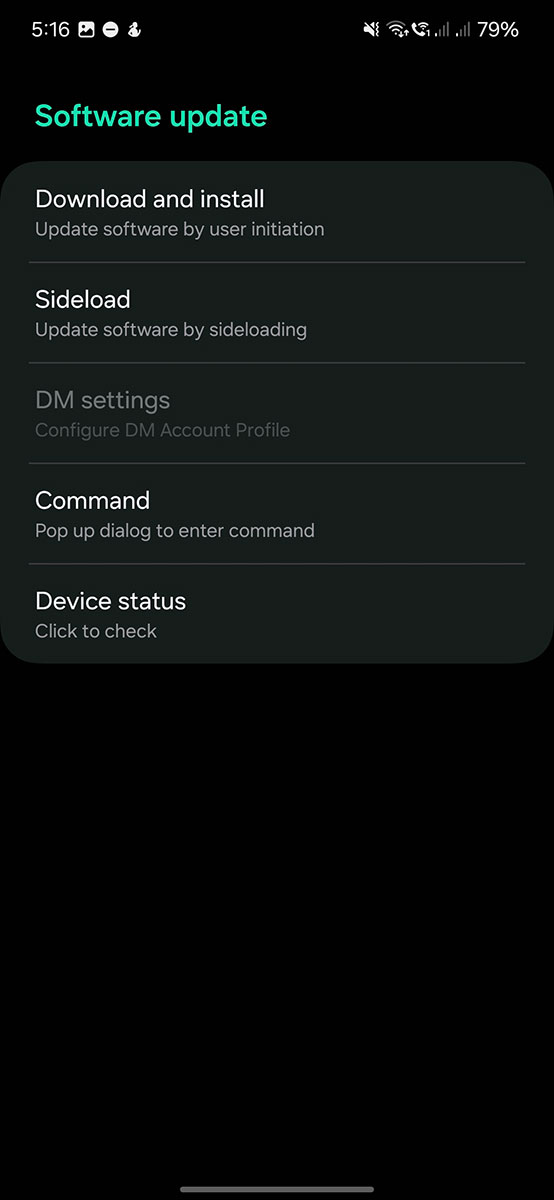 ۵- گوشی خود را قفل کنید، از صفحه قفل میانبر Software Updater را باز کنید.۶- اینجا مجموعهای از منوها را خواهید داشت. روی sideload کلیک کنید و وقتی از شما خواسته شد فایل را انتخاب کنید، فایل bin دانلود شده خود در مرحله ۱ را انتخاب کنید و دستورالعملهای بعدی را دنبال کنید.