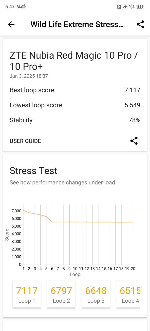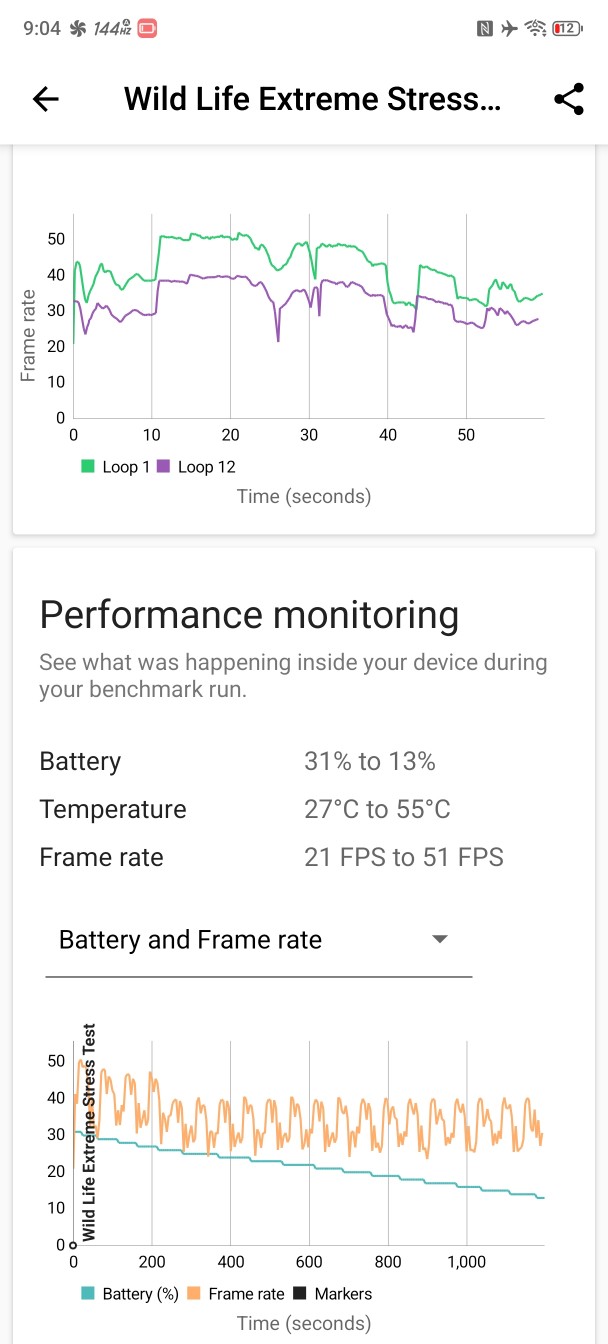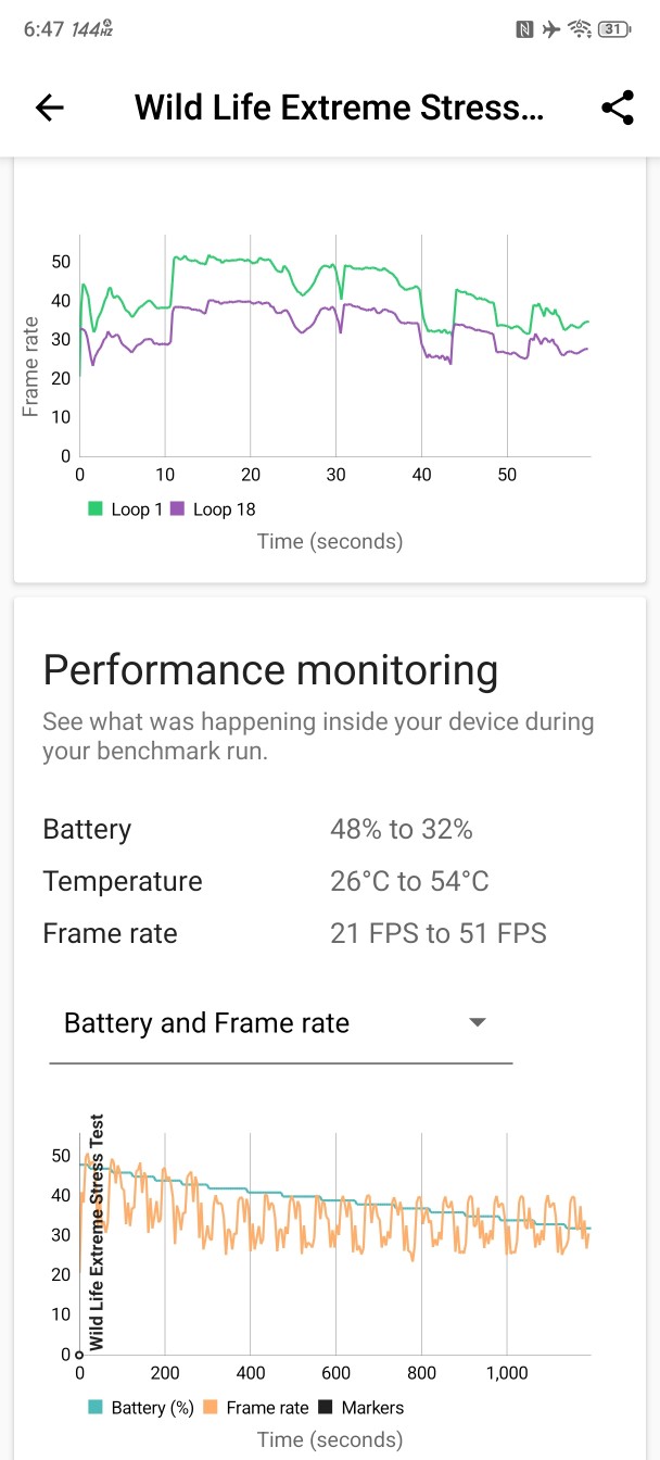 بنچمارک Wild Life Extreme (گرافیک): اورکلاک پردازنده گرافیکی تأثیر بیشتری در بازی دارد و به 10S Pro کمک کرده تا در بنچمارک Wild Life Extreme از دستگاههای رقیب پیشی بگیرد. این به معنای فریم ریت بالاتر در بازیهایی است که به سقف نرخ نوسازی نرسیده بودند و گیمپلی پایدارتر در بازیهایی که رسیده بودند.