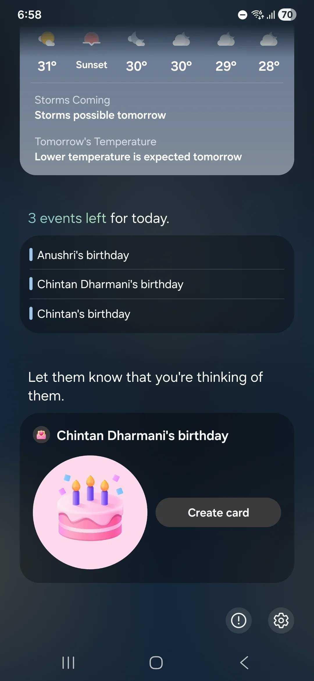 قابلیت Now Brief با سومین بتای One UI 8، هوشمندی‌های جدیدی کسب می‌کند. اکنون، این ویژگی در مورد رویدادهای پیش رو و به ویژه در مورد تولدها به شما اطلاع می‌دهد. حتی گزینه‌ای برای ارسال یک کارت تبریک تولد تولید شده توسط هوش مصنوعی برای شخص مورد نظر ارائه می‌دهد.