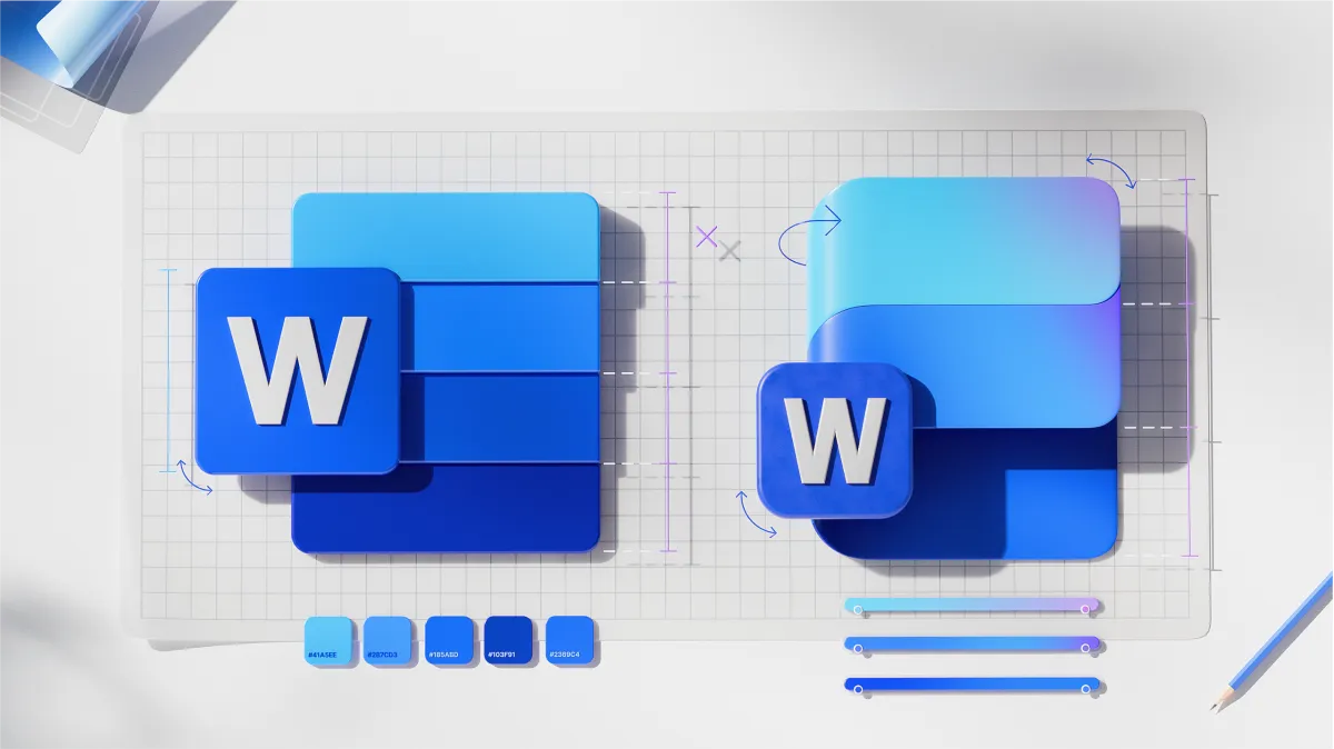 - سادهسازی برای خوانایی بهتر: آیکونهای جدید کمی سادهتر نیز شدهاند. بهعنوانمثال، آیکون Word که قبلاً از چهار نوار افقی استفاده میکرد، اکنون سه نوار دارد تا خوانایی آن در اندازههای کوچکتر بهبود یابد.