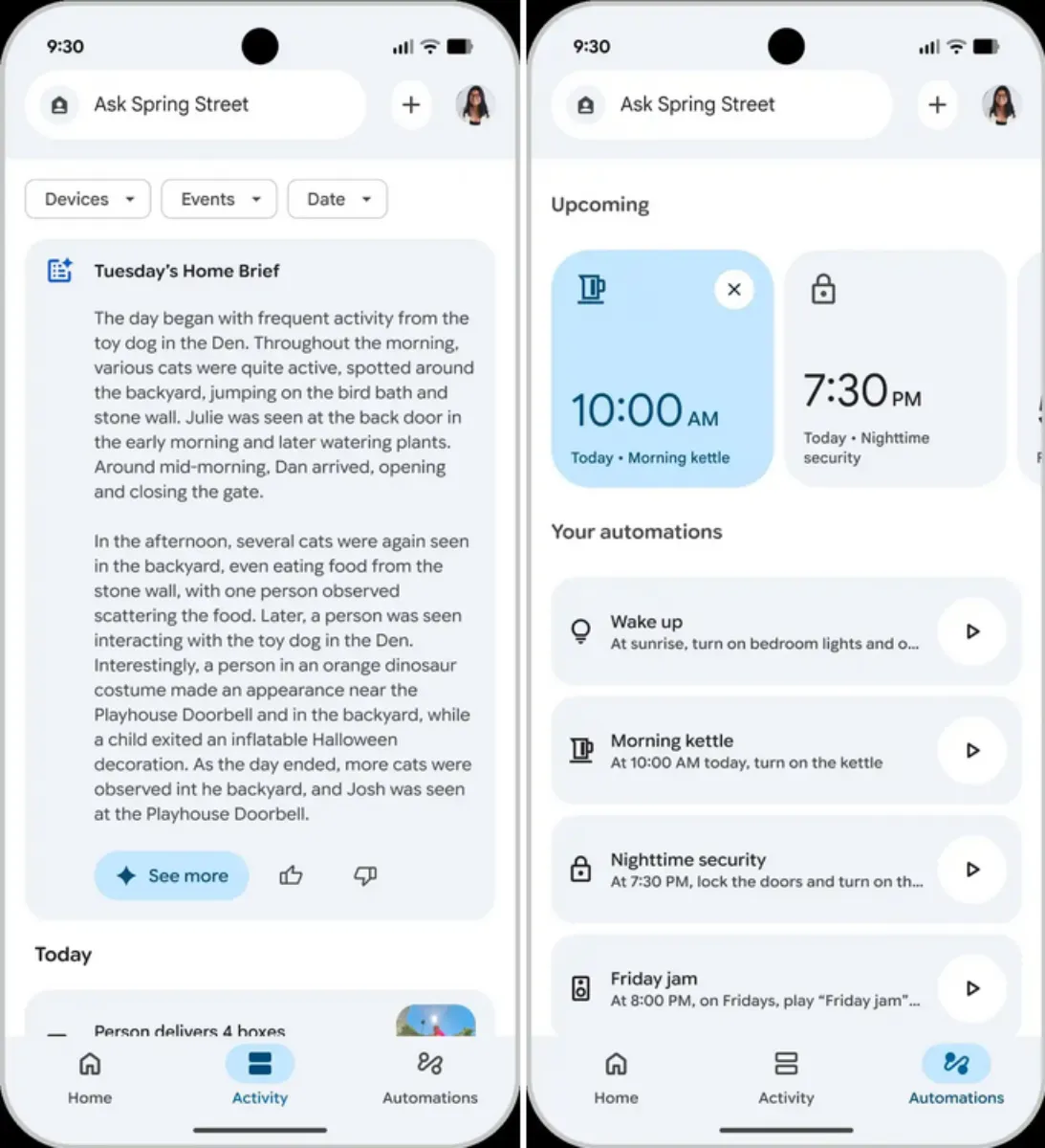 اولین ویژگی‌هایی که در برنامه پیش‌نمایش در دسترس قرار می‌گیرند، جستجوی تاریخچه ویدیو با Ask Home و ساخت اتوماسیون‌های محاوره‌ای هستند. آزمایش Gemini روی اسپیکرها و نمایشگرهای هوشمند نیز از اواخر این ماه آغاز خواهد شد.