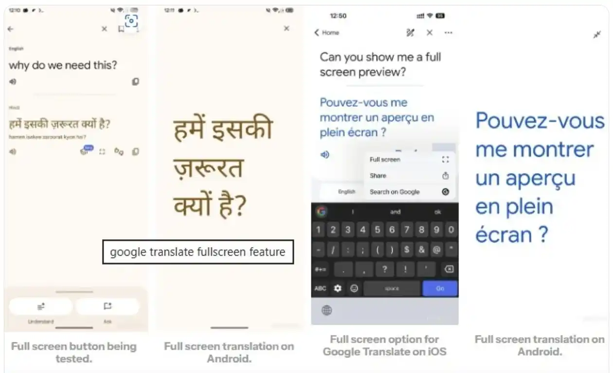 یک تغییر کوچک اما کاربردی دیگر، بزرگتر شدن فونت متن ترجمه شده است. این ویژگی که در نسخه 9.21.36 اندروید مشاهده شده، خواندن ترجمهها را، به خصوص در حالت تمامصفحه، برای کاربرانی که دید کاملی ندارند، آسانتر میکند.