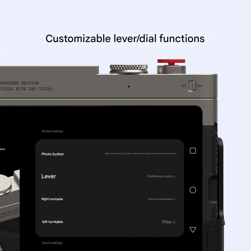 • 🔹 نوبیا از یک کیت عکاسی اختصاصی با طراحی رترو، دکمه‌های فیزیکی و دسته‌ای از چرم برای گوشی Z80 اولترا رونمایی کرده است.