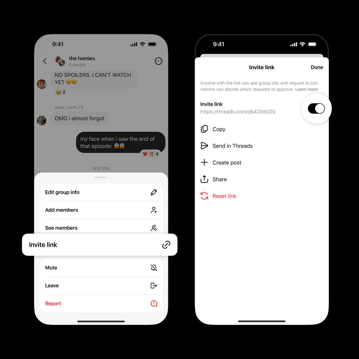 امروز، این شرکت درحال عرضه پشتیبانی از چتهای گروهی است. چتهای گروهی تا ۵۰ شرکتکننده را پشتیبانی میکنند، اما برای جلوگیری از سوءاستفاده، شما تنها میتوانید افرادی را اضافه کنید که از قبل شما را در تردز دنبال میکنند. گروهها میتوانند نامهای سفارشی داشته باشند و متا میگوید درحال کار بر روی دعوتنامههای مبتنیبر لینک است تا افزودن افراد به گروه بدون نیاز به اضافه کردن دستی آنها، آسانتر شود.
