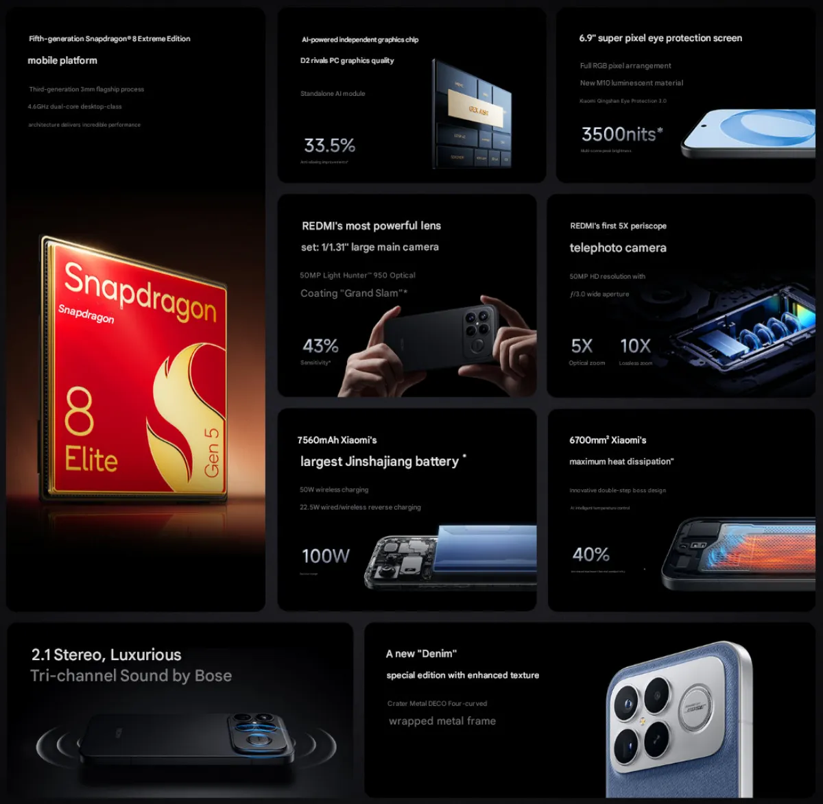 ردمی K90 پرو مکس رسماً معرفی شد: تراشه پرچم‌دار اسنپدراگون و سیستم صوتی Bose