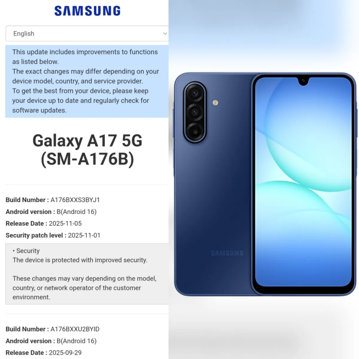 درحالحاضر، دارندگان گلکسی A17 5G در ویتنام میتوانند این آپدیت جدید را با شماره ساخت A176BXXS3BYJ1 دانلود کنند. همانطور که اشاره شد، این بسته فقط شامل بسته امنیتی آبان ۱۴۰۴ (نوامبر ۲۰۲۵) است و هیچ ویژگی جدید یا تغییری در عملکرد بههمراه ندارد.