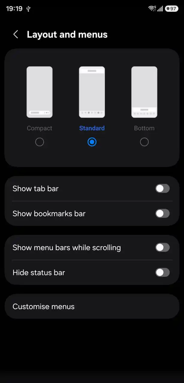 چیدمان کلی مرورگر نیز متفاوت خواهد بود. طراحی جدید که شباهت زیادی به نمای شبکهای (Grid View) اپلیکیشن گالری دارد، به شما امکان میدهد تبها را راحتتر سازماندهی و مدیریت کنید. همچنین یک «نوار شناور فشرده» جدید اضافه شده که به شما اجازه میدهد دکمهها را به دلخواه خود بچینید و حتی به دکمههای اضافی برای ناوبری سریعتر دسترسی داشته باشید.