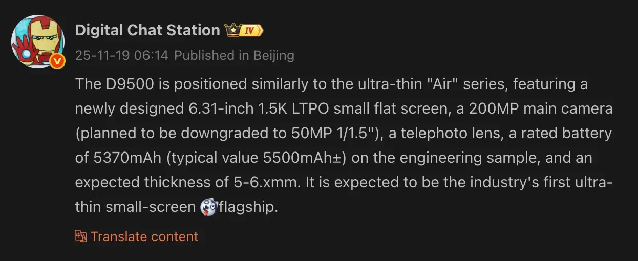 قلب تپنده دستگاه، طبق افشاگریهای قبلی، تراشه Dimensity 9500 است. با وجود بدنه بسیار باریک، انتظار میرود باتری با ظرفیت حدود ۵,۵۰۰ میلیآمپر ساعت در آن جای بگیرد که مهندسی تحسینبرانگیزی را طلب میکند.