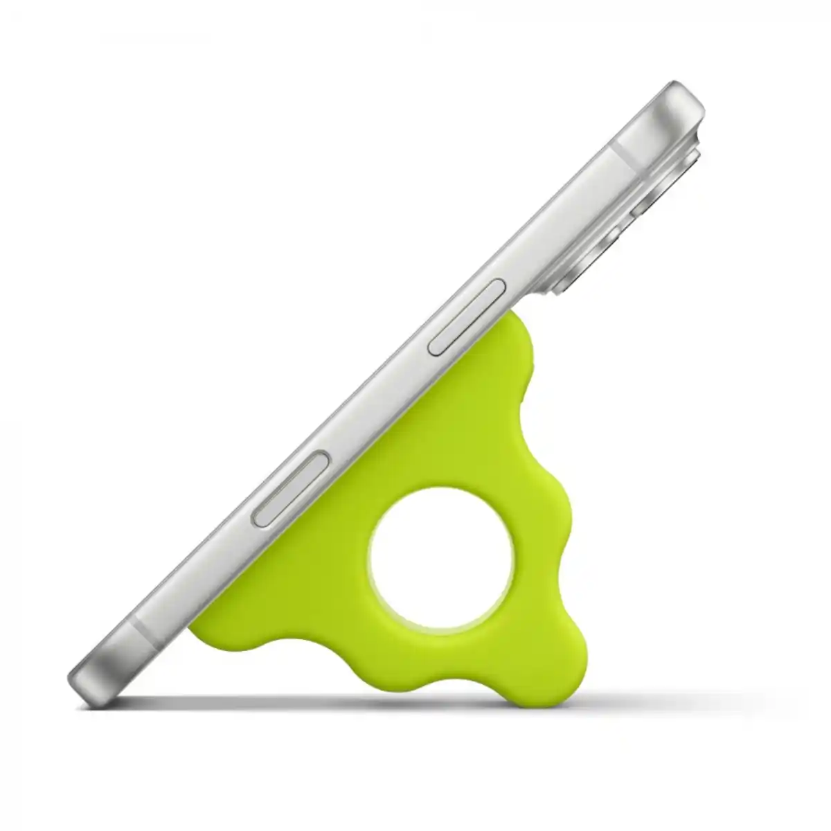 این اکسسوری از طریق مگ‌سیف (MagSafe) به هر آیفون سازگار با این فناوری متصل می‌شود و به راحتی نیز قابل جدا شدن است. علاوه بر این، به عنوان یک پایه نگهدارنده نیز عمل می‌کند و از آیفون در دو زاویه دید مختلف، هم به صورت عمودی و هم افقی، پشتیبانی می‌کند.