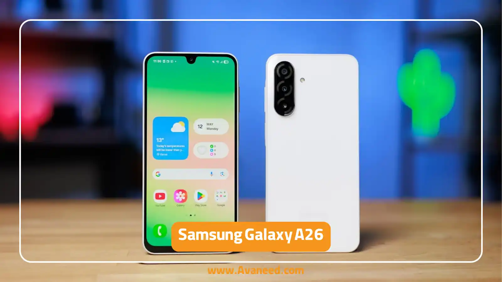 گلکسی A26 در سال 1404 با ابعاد 164 × 77.5 × 7.7 میلی‌متر و وزن 200 گرم طراحی خوش ‌دست دارد. بدنه شیشه‌ای با فریم پلاستیکی و استاندارد IP67 مقاومت مناسبی در برابر آب و گرد و غبار ارائه می‌کند. نمایشگر 6.7 اینچی Super AMOLED با رفرش ریت 120Hz، تصاویر روشن و روان ارائه می‌دهد. نسخه جهانی این گوشی با چیپست Exynos 1380 و نسخه LATAM با Exynos 1280 عرضه می‌شوند. سیستم دوربین شامل دوربین اصلی 50 مگاپیکسلی با OIS، دوربین 8 مگاپیکسلی اولترا واید، دوربین 2 مگاپیکسلی ماکرو و سلفی 13 مگاپیکسلی است.