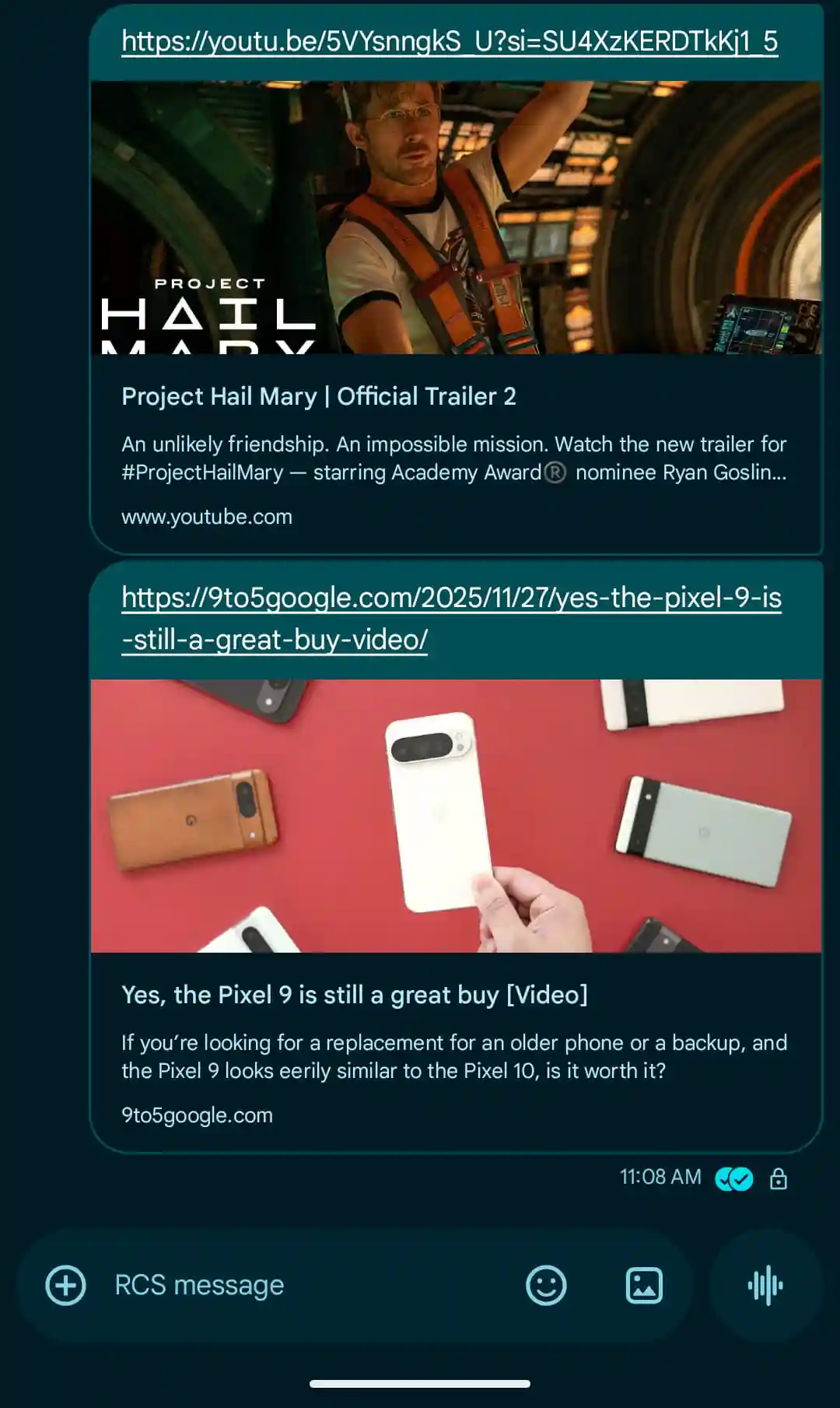 نحوه پیشنمایش لینکها در نسخه جدید بتا Google Messages