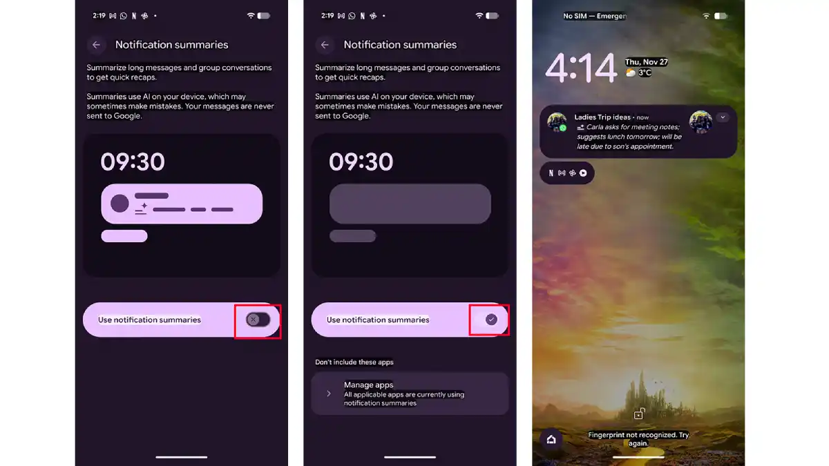 این ویژگی که پیش‌تر در اکوسیستم اپل بحث‌برانگیز شده بود، اکنون راه خود را به مدل‌های خاصی از گوشی‌های گوگل باز کرده است. گوگل در به‌روزرسانی (Pixel Drop) نوامبر ۲۰۲۵، قابلیت خلاصه اعلان‌های هوش مصنوعی (AI Summaries) را معرفی کرد که عملکردی مشابه سیستم اپل دارد اما با رویکردی متمرکز بر اکوسیستم اندروید.