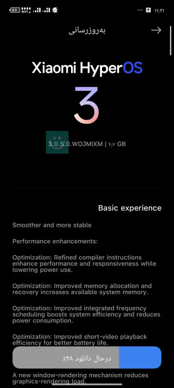 اسکرین شات آپدیت هایپراواس ۳ پوکو ایکس ۷ پرو