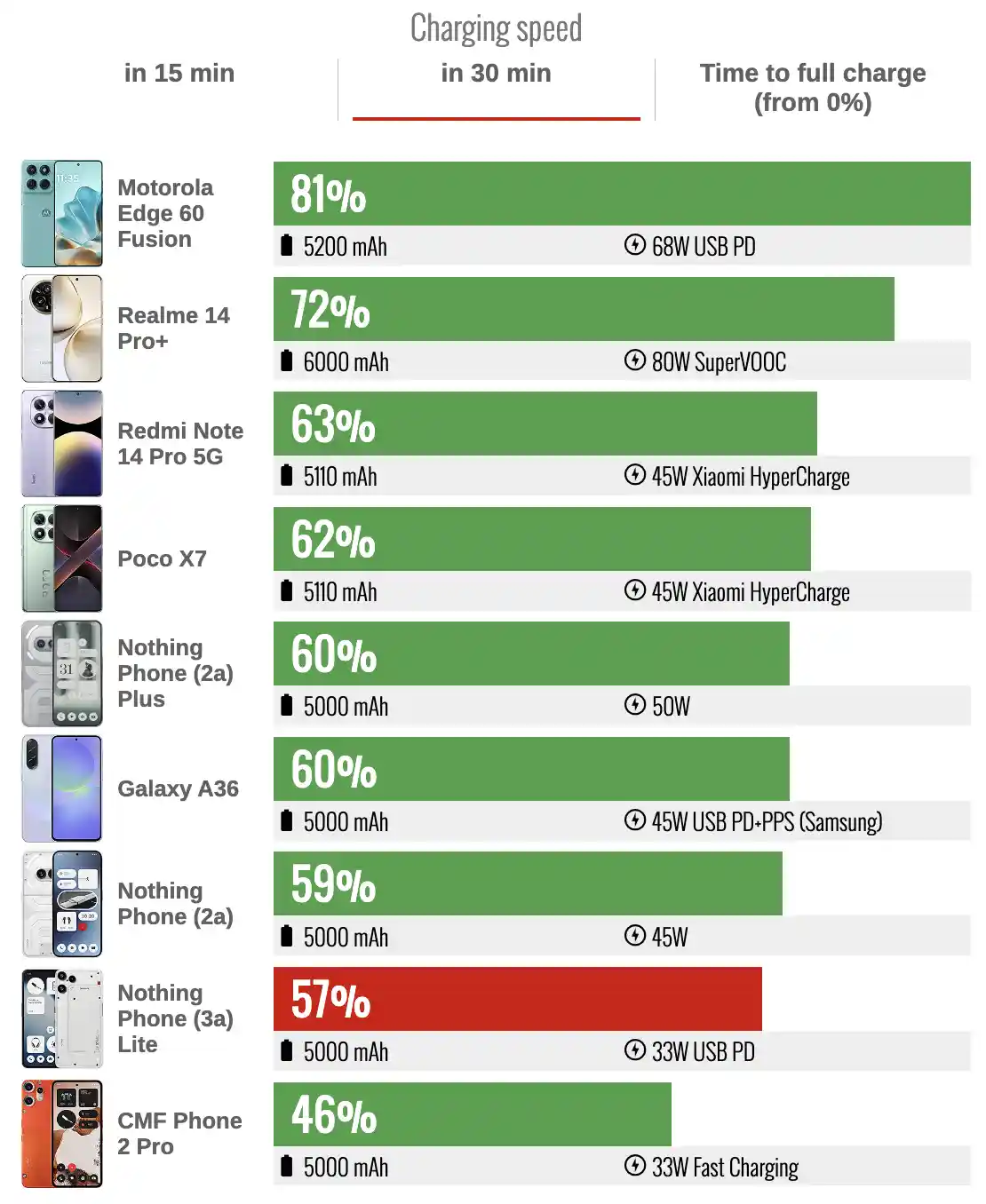 در تستهای انجام شده با شارژرهای مختلف (حتی شارژرهای قویتر)، این گوشی هرگز توانی بیشتر از ۲۷ وات را دریافت نکرد که نشاندهنده سقف واقعی دریافت انرژی آن است.