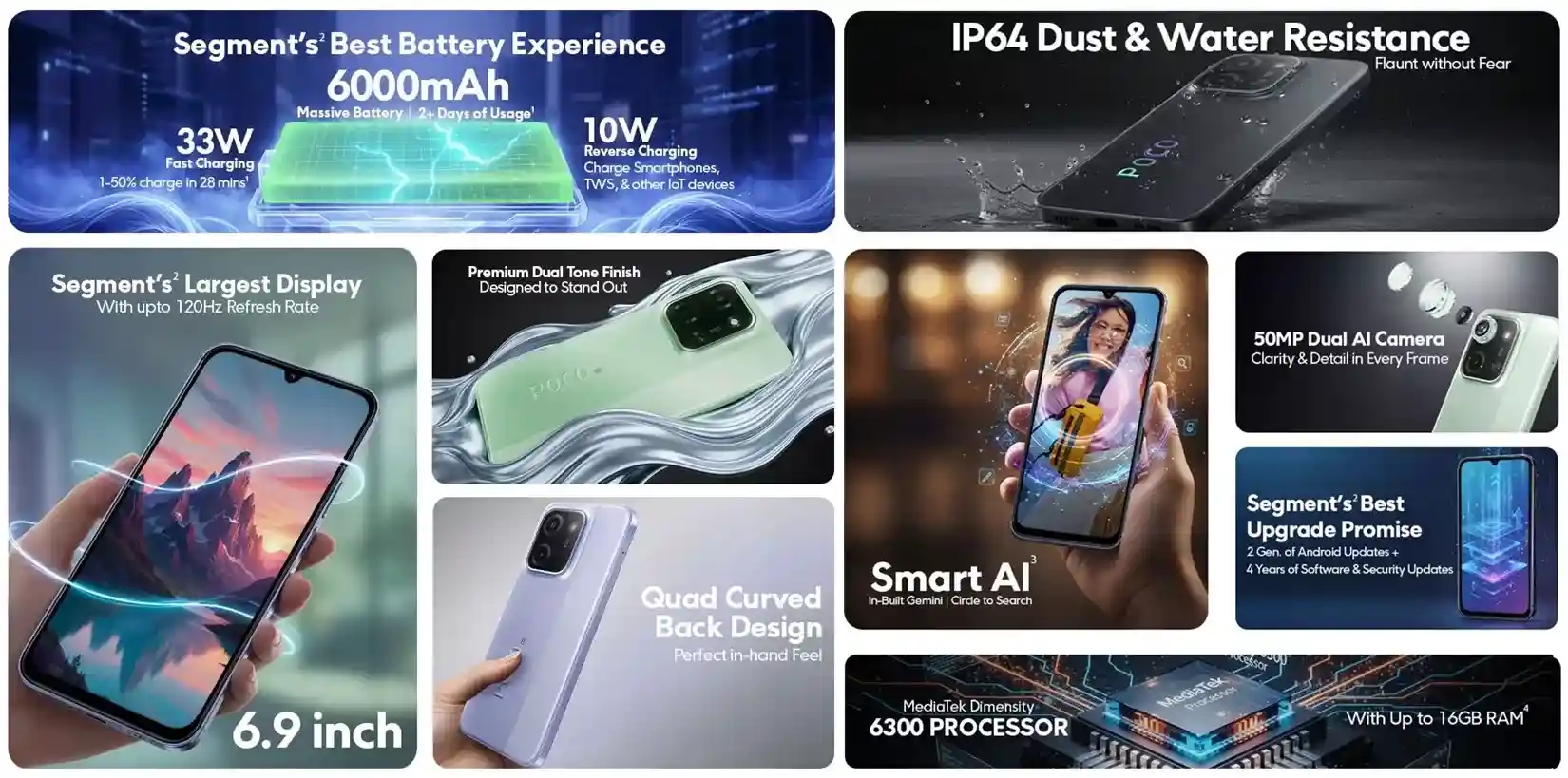 پوکو در طراحی این مدل تلاش کرده تا ویژگیهایی را که معمولاً در گوشیهای گرانتر دیده میشود، به رده اقتصادی بیاورد. در ادامه به جزئیات این مشخصات میپردازیم.