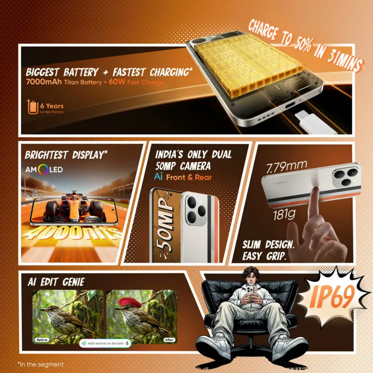 ریلمی Narzo 90x ۶ گیگابایت + ۱۲۸ گیگابایت ۱۳,۹۹۹ روپیه (حدود ۱۶۹ دلار)