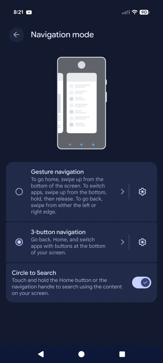 • یک چیدمان جدید برای نوار ناوبری سه‌دکمه‌ای به سبک گوشی‌های سامسونگ
