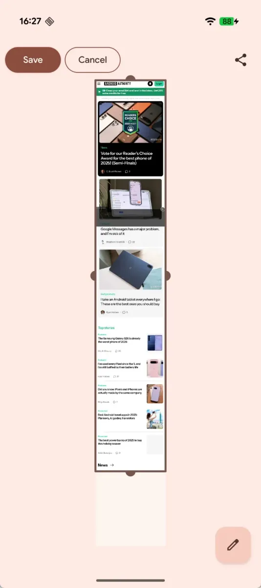 این یک تغییر بسیار کوچک در مقیاس بزرگ است، اما مطمئناً هر کسی که به‌طور مکرر از اسکرین‌شات‌های بلند استفاده می‌کند، از آن قدردانی خواهد کرد. ازآنجایی‌که اکثر کاربران از بیلدهای Canary استفاده نمی‌کنند، باید منتظر بمانید تا این ویژگی به کانال‌های بتا و پایدار راه پیدا کند. اولین زمانی که ممکن است آن را خارج از کانال Canary ببینیم، در نسخه بتای آینده Android 16 QPR3 خواهد بود که باید به‌زودی و پیش از عرضه نسخه پایدار در اسفند ماه منتشر شود.