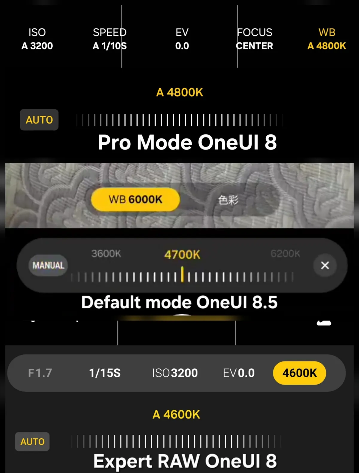 چیزی که این تغییر را بهخصوص جالب میکند، نحوه رفتار آن است. همانطور که توسط کاربری با نام Wvisioncreation اشاره شده، تنظیم تراز سفیدی، شباهتی به پیادهسازی سنتی در حالت Pro ندارد. درعوض، ظاهر و حس آن بسیار به Expert RAW نزدیکتر است. این موضوع نشان میدهد که سامسونگ ممکن است بهجای ارائه یک اسلایدر دستی ساده، منطق پردازش زیربنایی Expert RAW را به عاریت گرفته باشد.