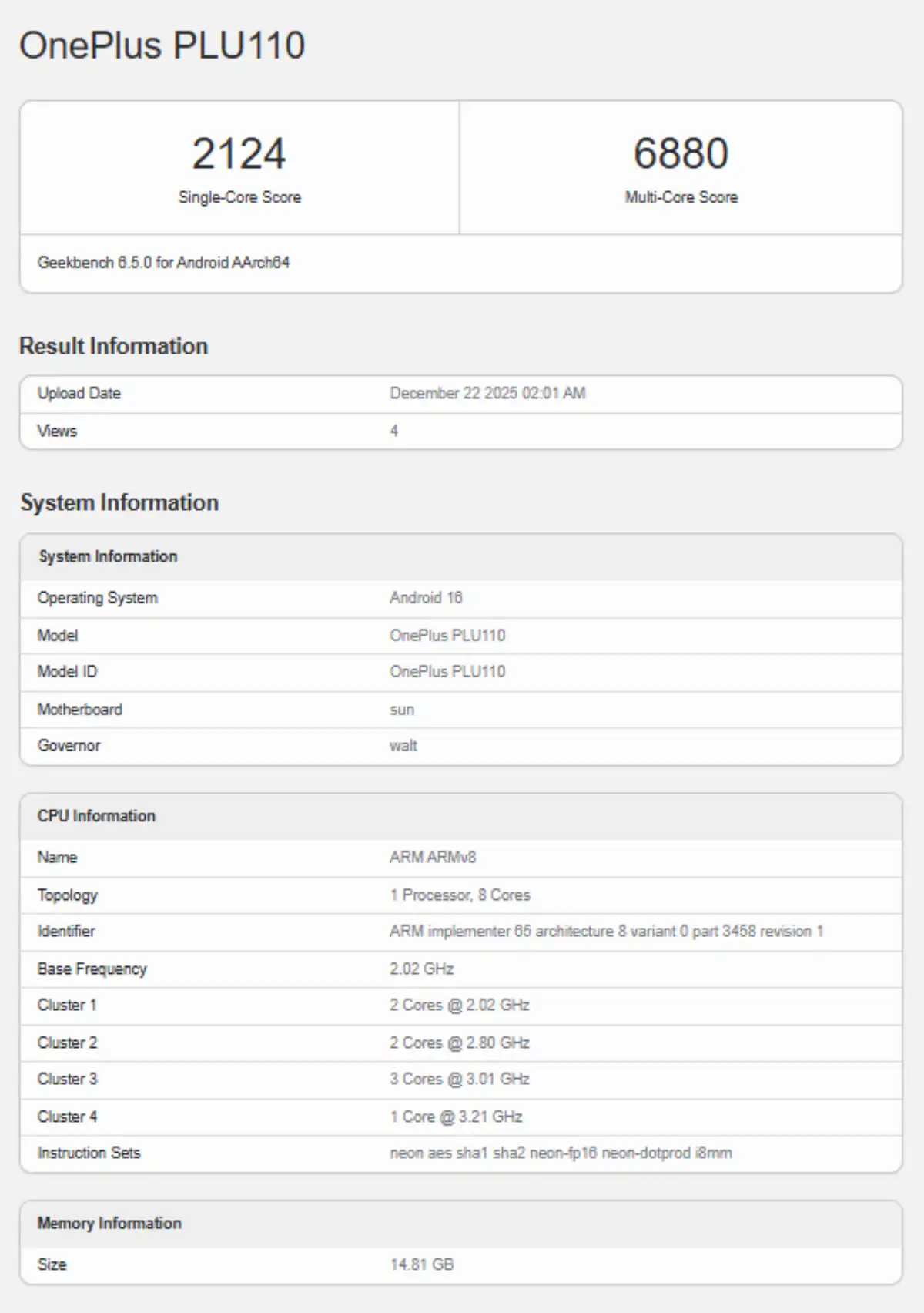 وان پلاس توربو در میان داده‌های بنچمارک Geekbench