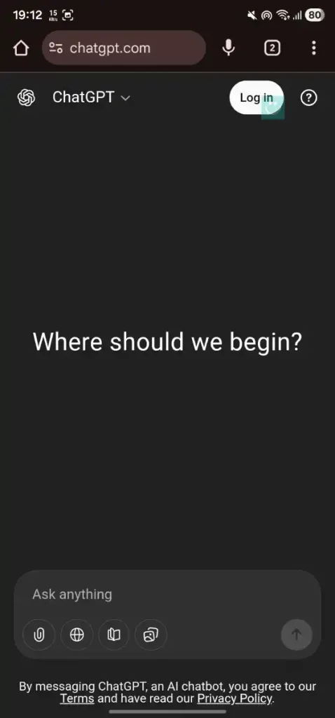 1. وارد وب‌سایت ChatGPT شوید (اگر اکانت قبلی دارید، Log out کنید).