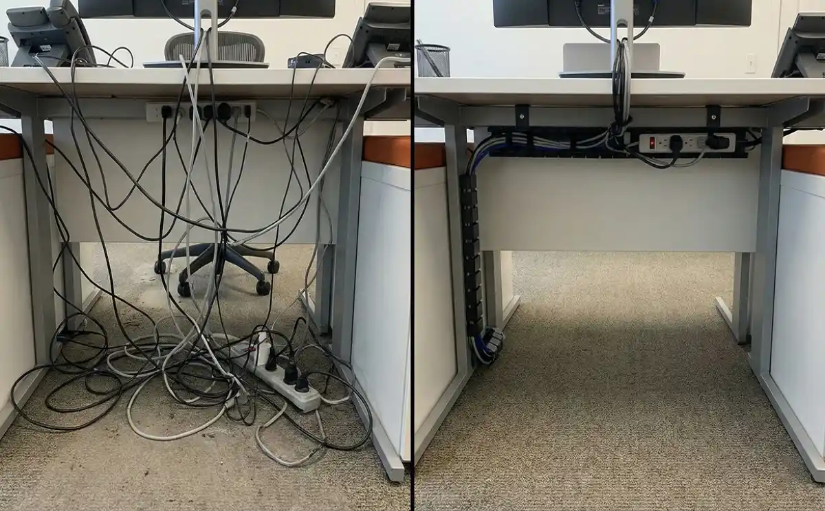 ما در عصر تکنولوژی زندگی میکنیم. روی هر میز اداری حداقل یک مانیتور (گاهی دو مانیتور)، لپتاپ یا کیس، تلفن و انواع شارژرها قرار دارد. یکی از آزاردهندهترین صحنهها در بسیاری از دفاتر ایرانی، آشفتگی سیمها زیر میز و روی زمین است.