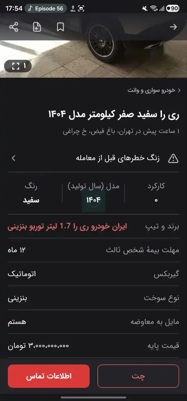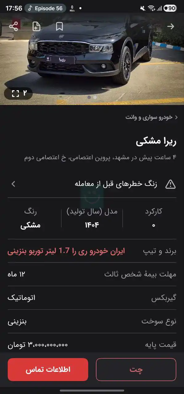 🔹 کراساوور جدید ریرا با قیمت نجومی ۳ میلیارد تومان در پلتفرمهای آنلاین قیمتگذاری میشود.