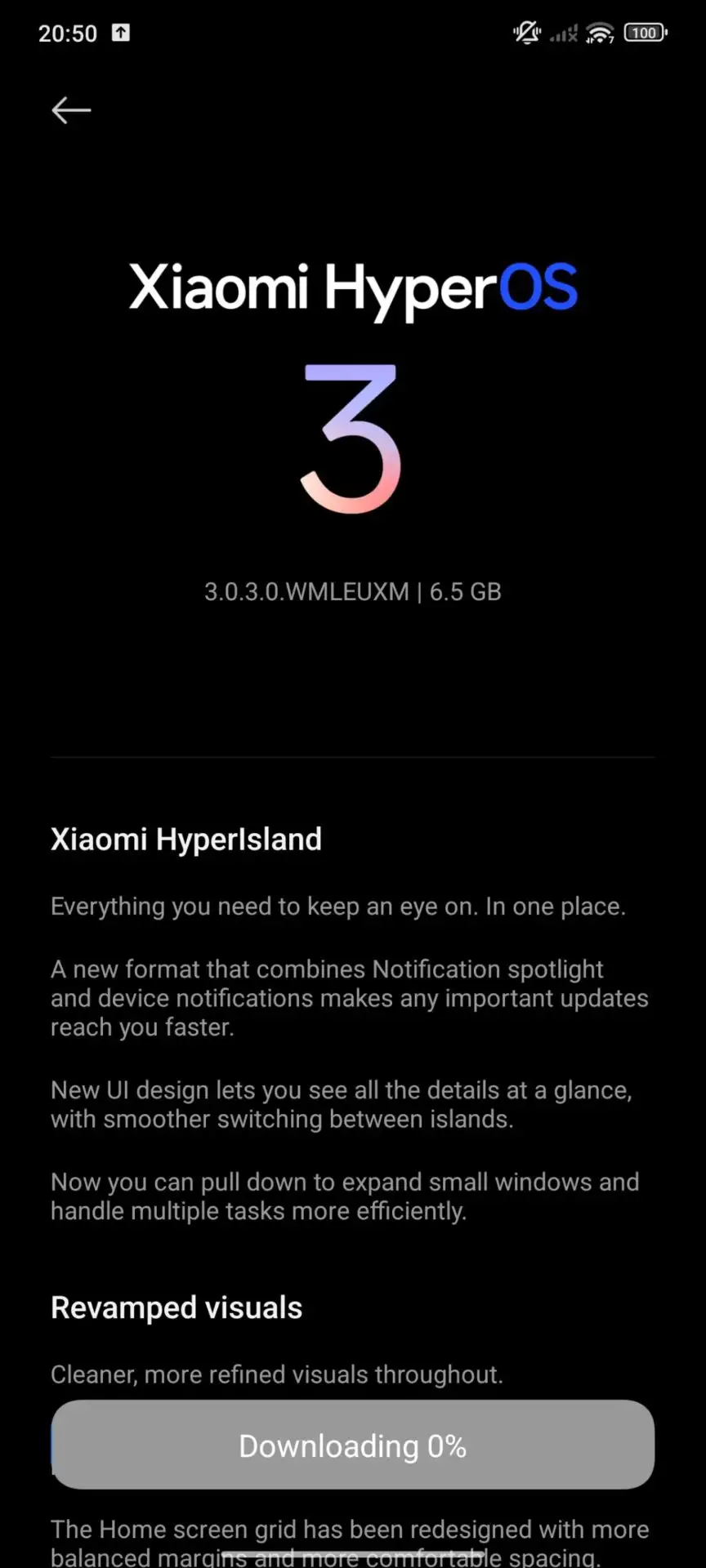 اسکرین شات از صفحه آپدیت HyperOS 3 شیائومی 13T Pro