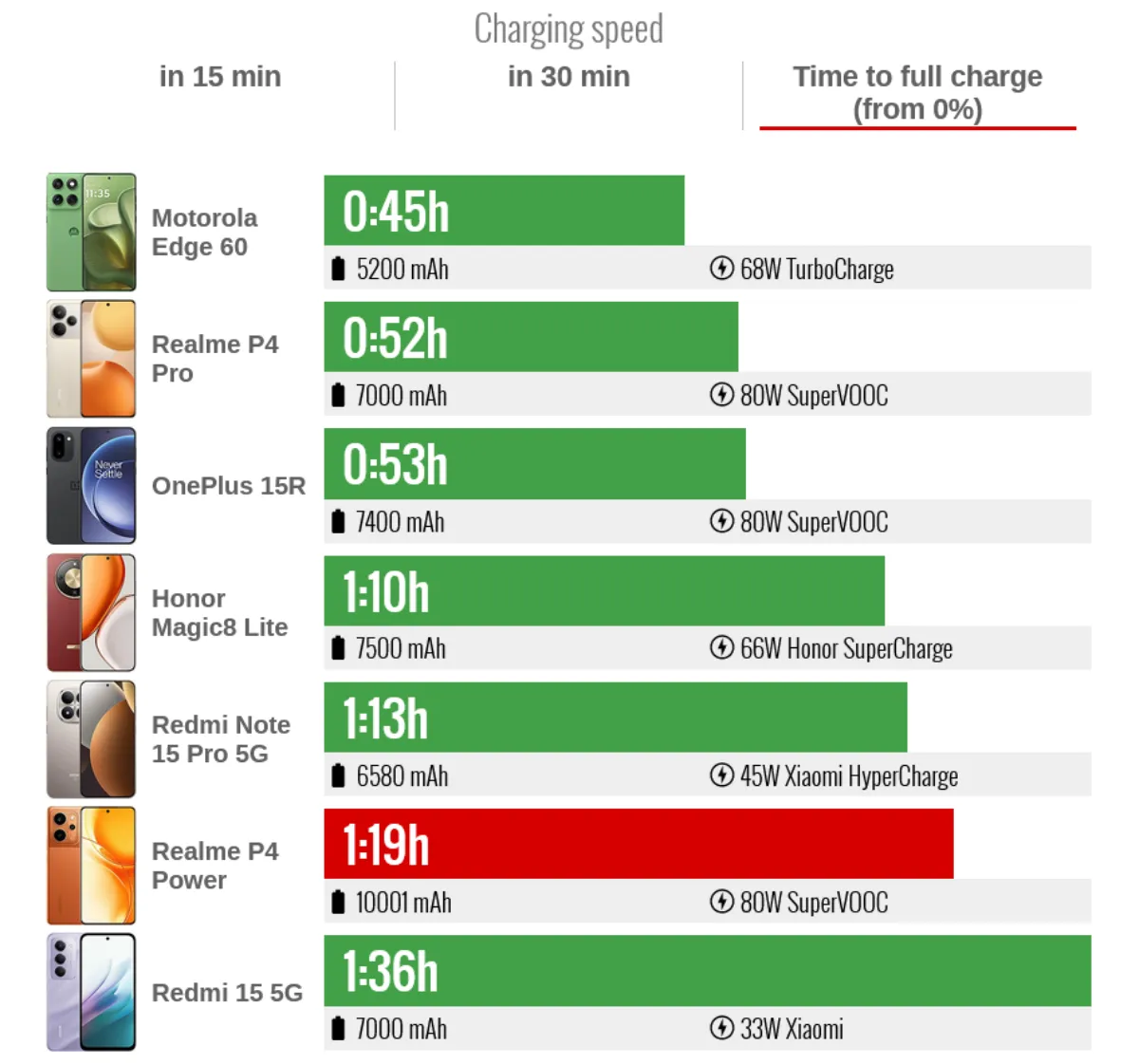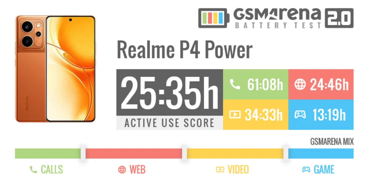 | Realme P4 Power | 10,001 mAh | 25:35h |