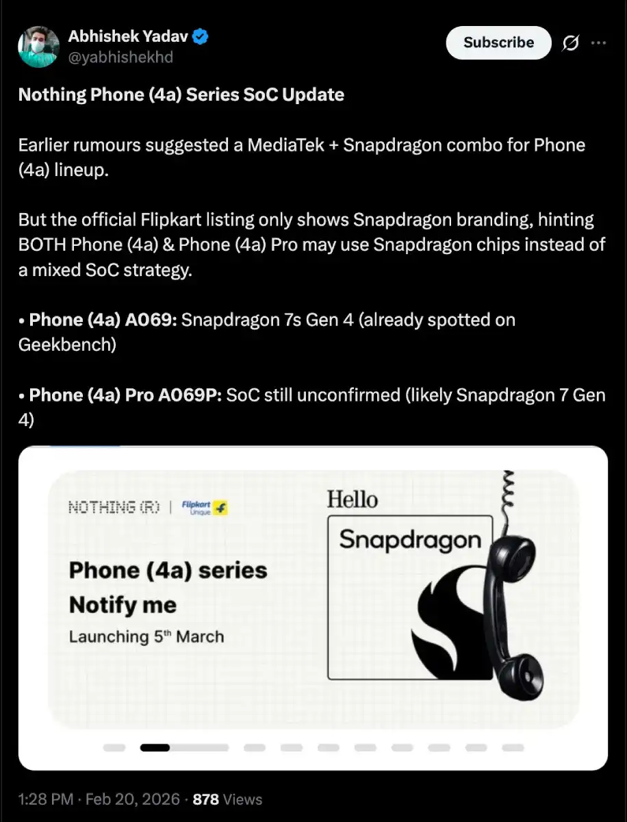🔹 گوشی ناتینگ فون 4a با تراشه اسنپدراگون 7s نسل ۴ و مدل پرو احتمالا با تراشه اسنپدراگون ۷ نسل ۴ عرضه میشوند.
