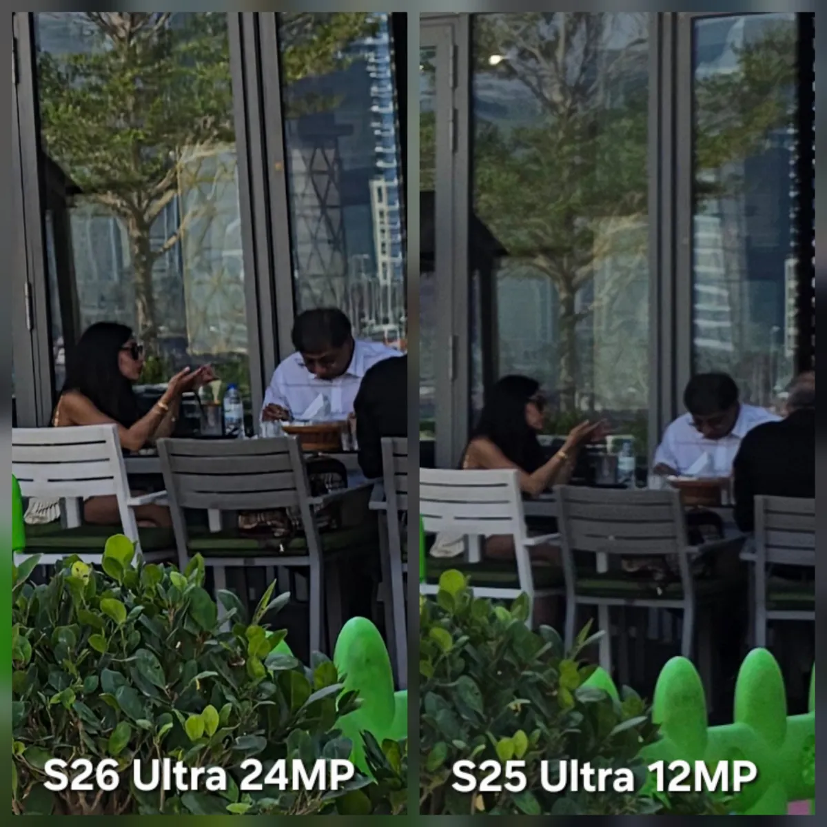 درنهایت، حالت جدید ۲۴ مگاپیکسلی در گلکسی S26 اولترا دربرابر دوربین ۱۲ مگاپیکسلی نسل قبل محک زده شد. تحلیلهای کاربران نشان میدهد که تصویر ۲۴ مگاپیکسلی هنگام بزرگنمایی برتری واضحی دارد. پردازش هوش مصنوعی نیز کمک کرده تا عکس شفافتر و با نویز کمتری ثبت شود. بااینحال، عکس نسل قبلی (S25 اولترا) کمی طبیعیتر و با پردازش نرمافزاری کمتر بهنظر میرسد. البته باید در نظر داشت که نرمافزار گلکسی S26 اولترا ممکن است نسخه نهایی نباشد و تا زمان عرضه نهایی بهبود یابد.