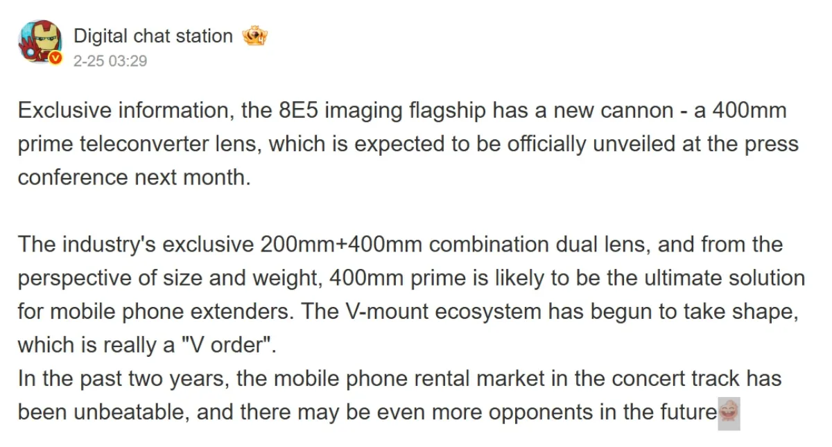 🔹 افشای جزئیات کیت تلهکانورتر خارجی با لنز دوگانه و فاصله کانونی ۴۰۰ میلیمتری.